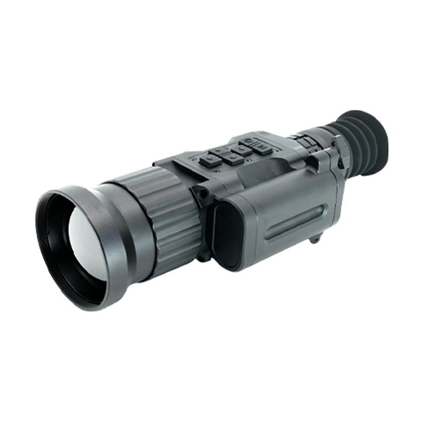 SHASTRA 54 is a high performance thermal sight with a 640×480 vanadium oxide detector, 54mm F/1.0 lens, and OLED display at 1024×768 resolution. It includes multiple color palettes, 4x digital zoom, hotspot tracking, Wi-Fi image transmission, and photo and video recording.